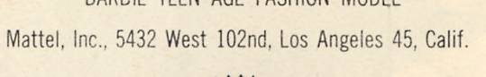Sonstiges: Gemarkt MCMLVIII (= 1958)Titel- und Rückseite, Mattel-Anschrift 'Los Angeles' auf Rückseite