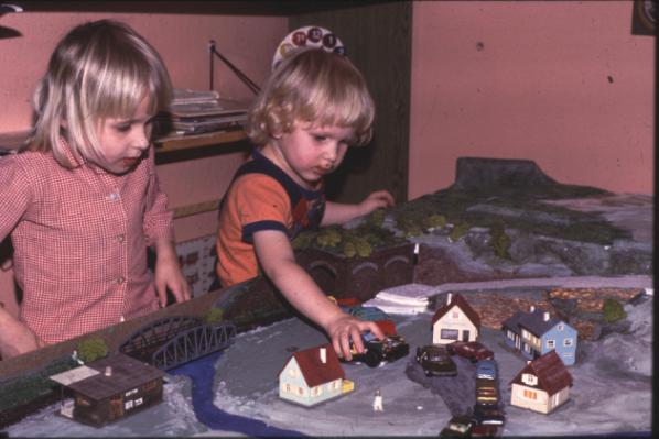 immer auf einer Platte ca. 1 x 2 m aufgebaut, die klappbar an der Wand befestigt war (auf dem Foto zu erkennen). Alt wurde diese Anlage nicht, da sehr bald alles auf Zweileiter-Gleichstrom umgerüstet wurde. Märklin-Schienen verkauft, Loks und