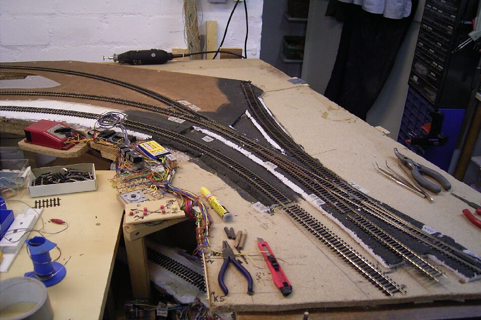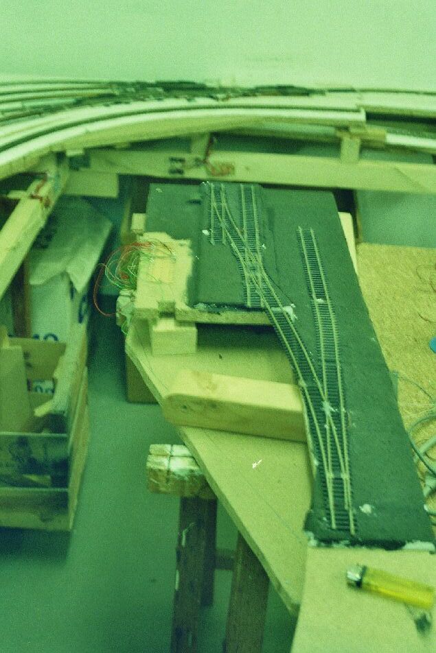 Mitte Links: Rechte Einfahrtgruppe des unteren Schattenbahnhofs. Rechts die Baugruppe, die im nächsten Bild groß dargestellt wird.
