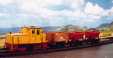 Schienenmaterial ist aus wetterfestem Kunststoff und Messing, die Fahrzeugmotoren sind gekapselt - die Loks fahren