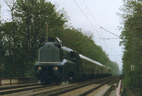 stärkste betriebsfähige deutsche Schnellzugdampflok und nach 18 201 die zweitschnellste. Bei einer der ersten Fahrten habe ich 1996 bei schlechtem diesigem Wetter 01 1102 - von Solingen kommend - bei Langenfeld fotografiert. Die