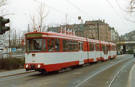 (Duisburger Verkehrsbetriebe. Bei Fahrzeug 1000 der DVG handelt es sich um einen