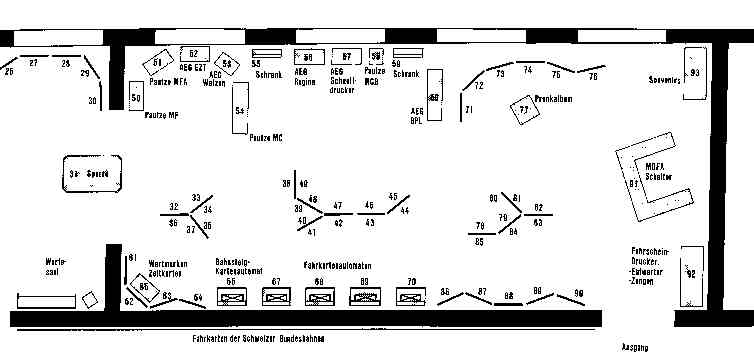 Nachstehend der Plan der Ausstellung in zwei Teilen (aus dem Buch “Die Fahrkarte”