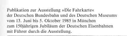 Vorder- und Rückseite des Handbuch-Katalogs zur Ausstellung “Die Fahrkarte” vom 13. Juni bis zum 5. Oktober 1985 im Deutschen Museum in München.