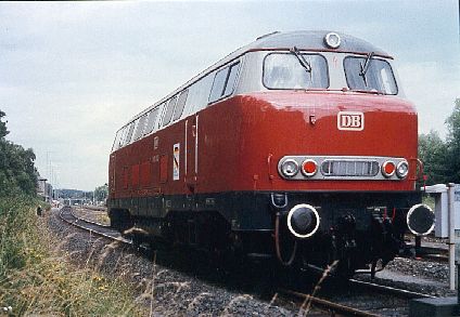 Die Aufnahmen stammen aus dem Museumseinsatz der V 160 003 anläßlicher der 150-Jahr Feier der DB. V 160 003 beim Lokwechsel in Bayreuth anläßlich der Rundfahrt vom 13.7.85.