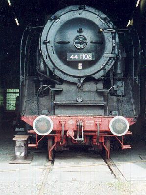 44 1106 (44 0106-3 mit Ölhauptfeuerung) im Schuppen. Borsig 1942, Fabriknr. 15155